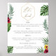 Menyn bröllop pub med guld och tropisk design, löv med grön tropism.