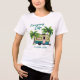 Tropiskt lägerskjorta med liten reflexbild. Två handflatan träd omger lite RV med "Camping Life" i blå skuggtext. Texten "Florida Nycklar" är lätt att byta till namn på din favoritcampingplats, hemstad eller familj namn.