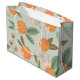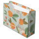 Med den här presentpåsen i stil ger ge gåvor med en färgstark illustrerad mönster av orangar, tropiska blommor och löv på ljust grönt bakgrund.