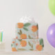 Bygghöjningar i stil med denna pappra förpackning, med en färgstark illustrerad mönster av orangar, tropiska blommor och löv på ljust grönt bakgrund.
