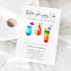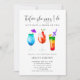 Roligt inbjudningskort för möhippan för illustration av färgstarka tropiska drinkar. I texten står det: "Innan hon säger att jag gör det, låt oss du en drink eller två."