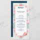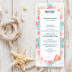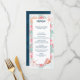 Nautical, "Under the Sea"-temat på bröllop-menyn har en färgstark vattenfärgkorallrev och segelceller i skuggor av aqua, mynta, korall och rosa med marin blå text. Omvänd sida är en mönster av sjöceller och korall på en marin blå bakgrund. Koordinerar min "Tropical Reef"-samling och är perfekt för bröllopsteman för strand, nautiska, kust och destination. Originalteckningen KL Lagrar