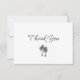 Tropical Birthday gift thank you card, with an elegant palm trees design on a white background. With customizable typography lettering, you add your own information. A lovely way to thank your birthday guests with a beach theme.