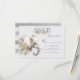 Vacker vattenfärg Jungle Elephant OSA responskort med blommigt inslag och gräs med , grå och grönt blad på en faux, mycket lätt grått bakgrund. Baksidan är en grått-vattenfärgad grått-strimlad bakgrund. Perfekt för ett safari-, zoo-, afrikanskt eller vild djur bröllop. Behöver hjälp med layouten, bara skicka e-post med länken till tkatz@me.com Många matchande objekt på samma sida!