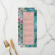 Tropical Essence Menu (meny för tropisk essens), en vackert designad meny med ett tropiskt inspirerat mönster som tillför en förfinad och elegant beröring till bröllop eller speciella evenemang. Perfekt för strand-, trädgårds- och destinationsbröllop. Den här menyn visar dina diskar i stil samtidigt som du förbättrar det tropiska temat för firande. Det ger en polerad och sammanhållen bild som ger dina gäster en minnesvärd upplevelse. Den här designen skapas med en digitalt redigerad AI-bild.