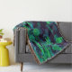 Abstrakten mönster på detta Throw Blanket by HomeWare skapades från ett originalfoto av royalet poinciana träd. Vissa av trädens tropiska löv befinner sig i solljus, i ljusa gröntar i gulten. Andra är i skugga, i skuggor av blått från akvarium till djuphavsbotten, med högdagrar för lila. Bakgrunden är nästan svart. Konstruktionen har en övergripande struktur i struktur.
