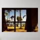 Tropical Fiji Beach Scene - Fotografi av en strand på Fijiöarna med handflatan träd, hammocks och en picknickbänk som ses genom de öppna skuttrarna på en strandhut. © Alan Harman Photography 2004. Alla reserverade Höger. www.alanharmanphotography.com 120418 poster utskrift