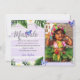 Tackkort med mahalo, tropisk design och lila bakgrund.