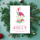 Kute Florida-julkort med rosa julflamingodesign "Tis the song to be jolly". Anpassad med ditt kort-meddelande och namn. Detta julkort från Florida återgår till en rosa och vit handflatan träd.