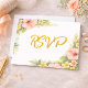 The bold golden script “RSVP” creates a striking focal point, blending modern sophistication with romantic charm. Surrounded by airy botanical accents, the design feels fresh, graceful, and effortlessly cohesive with garden or destination wedding themes. Order yours today!