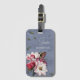 Tropical Flowers Dusty Blue Monogram Name Bagagebricka