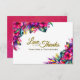 De vackra tackkorten i bröllop har ord Kärlek och Tack omgivna av en mängd tropiska blommor och löv i klara skuggor av shock rosa, fuchsia, magenta, lila och gult. Baksidan har plats för en kort-lapp och anpassningsbar namnteckning tillsammans med en bukett av samma blommor. Det här tackkortet är enkelt och elegant, och det är perfekten för att låta dina vänner och familj få veta hur mycket du uppskattar deras kärlek och stöd.
