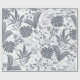 Modern botanisk löv- och blommålning från sommaren, fyllda med grått och vita färg exotiska växter mönster, unika faderade löv-former och blommor djungelgrön mönster, på en helt vit bakgrund. En illustration av jordskog med snyggt och trendig, tropisk utformning av jordens grått-toner, perfekt för en elegant av botanisk natur under sommaren.