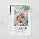 Share your gratitude with this beautiful tropical wedding thank-you card, featuring hand-painted watercolor monstera leaves, palm fronds, and lush island greenery. The vibrant botanical artwork brings a fresh, destination-inspired feel—perfect for beach weddings, tropical celebrations, or summer events. With space for your personal message or photo, this customizable card offers a stylish and memorable way to thank your guests while completing your coordinated wedding stationery suite.