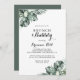 Denna tropiska grönbrunch och bubblande inbjudningskort för möhippan är perfekt för en strålande möhippa. Grönt handflatan lämnar buketter med vita vackra blommor.