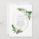 Trendigets grönt och vita vattenfärgade tropiska löv och vita magnolier Firande i Life-inbjudan med guld geometriska ram.