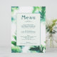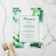 Ställ sinnesstämningen för ett utsökt firande med den här tropiska botaniska firande leafy Menu. Med en mjuk grönt som ramats av en lush leafy gräns, detta kort presenter varje gång i stil, blandar naturlig elegans med en liten bit av tropikarna. Perfekt för bröllop, party i trädgården eller något naturinspirerat firande kompletterar detta menykort en lång rad teman, från tropiska till boho och moderna. Oavsett om det är ett målbröllop eller en mysigt, naturtematisk samling ger det här menykortet ny botanisk skönhet till dina bord-inställningar. Låt dina gäster förhandsgranska varje kurs med stil och luft samtidigt som du förbättrar matslingans flykt med en design som är lika smakfull som själva måltiden!