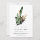 Bröllopbjudan innehåller tropiska grönsaksaksaksakaktus och guld lövning. Perfekten letar efter sommaren och det moderna eko-bröllop.