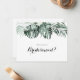 Detta frieri kort för tropiska gröna vita blommigtar är perfekt för ett orustiskt bröllop. Grönt handflatan lämnar buketter med vita vackra blommor. Byt ordalydelse och använda för dessa kort för att fråga alla medlemmar i brudens sida; maid of honor, hedersbetygelse, brudgumm, yngre brudgumm, blomsterflicka, bäste man, marskalkar med mera!