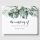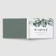 Denna tropiska gröna vita blommigt-kalligrafi bröllop gäst bok är perfekt för ett rustiskt bröllop. Grönt handflatan lämnar buketter med vita vackra blommor. Anpassa framkåpan och ryggraden så att namnen på bruden och brudgummen och bröllop-datumet inkluderas.