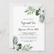 Denna tropiska grönaktiga vita blommigt-sip och se inbjudan är perfekt för ett rustikmöte i baby party. Grönt handflatan lämnar buketter med vita vackra blommor.