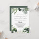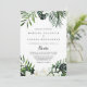 Den här tropiska gröna vita blommigten Spanska bröllopsinbjudan är perfekt till ett destinationsbröllop. Grönt handflatan lämnar buketter med vita vackra blommor.