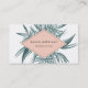 Unik tropisk design har ditt namn och din titel eller ditt företag namn som visas på en summerisk persikogeometrisk inslag, som läggs över jasper grönt tropiska handflatan frondlöv. Lägg till kontaktuppgifter för fullt på baksidan, med en mindre handflatan-sida.