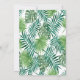 En elegant blommigt tropiskt grej sparar datumet för ett bröllop-kort. Mallar för datum för namn och bröllop. En elegant vit bakgrund, svart brev. Vattenfärgad grönt handflatan träd löv och löv som ram. Bakåt: Samma bakgrund som ram på framsidan.