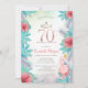 Tropiska handflatan lämnar, blommor och rosa flamingo. Den här inbjudan är lätt att anpassa för evenemanget genom att helt enkelt lägga till information.