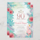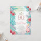Tropiska handflatan lämnar, blommor och rosa flamingo. Den här inbjudan är lätt att anpassa för evenemanget genom att helt enkelt lägga till information.