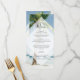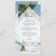 Den här konstruktionen har tropiska handflatan träd på en strand. Den vackra greyn i handflatan kontrasterar mot blå himmel och vatten. Den ogenomskinliga vita diamanten inslag för den moderna typografin framåt. En perfekt som förenar modern och chicen. Greenerydesign i handflatan träd passar perfekt för ett tropiskt turistbröllop på stranden. Beach-menykortsdesign med modernt inslag. Det finns också möjlighet att matcha bröllopsinbjudningar och andra artiklar i kontorsartiklar.