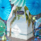 Den här konstruktionen har tropiska handflatan träd på en strand. Den vackra greyn i handflatan kontrasterar mot blå himmel och vatten. Den ogenomskinliga vita diamanten inslag för den moderna typografin framåt. En perfekt som förenar modern och chicen. Greenerydesign i handflatan träd passar perfekt för ett tropiskt turistbröllop på stranden. Beach-favoritboxdesign med modernt inslag. Det finns också möjlighet att matcha bröllopsinbjudningar och andra artiklar i kontorsartiklar.