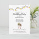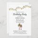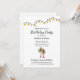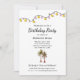 Tropiskt Födelsedagsfest inbjudan, med elegant handflatan träd och sträng ljus på vit bakgrund. Med anpassadets typografietext lägger du till egna uppgifter. En glamorös inbjudan för att planera din strand inspirerade firande.