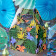 Hawaiian Print - Den här bilden är en grafisk konst av hawaiiska blommor och handflatan löv. Teckningsillustration målar kollage.