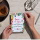 Bröllop spara datum har vattenfärgstropiska handflatan-löv, rosa hibiscus, tropiska blommigtar och fåglar samt ett färgstarkt skrivteckensnitt. Detta gör att perfekten läggs till din tropiska strand eller ön bröllop firande. Lägg enkelt till eller ta bort QR-koden på baksidan tillsammans med webbplatsen för bröllop om du vill ha en personlig kontakt.