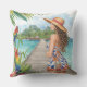 Tropical island Beach and Lovely Women Outdoor Pillow