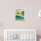 Retro stil målade vintage stil reseaffisch för Maui på Hawaii. Funktioner för akvabblyer och gröntar, med sandtoner och Handflatan träd.