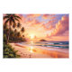 The radiant blend of sunset hues—soft oranges, warm pinks, and dreamy blues—creates a calming yet energizing atmosphere, making it the perfect piece to transform any space into a peaceful tropical retreat. Whether displayed in your living room, bedroom, office, or beach house, this wall art invites relaxation, inspiration, and wanderlust.