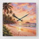Tropical Island Paradise & Sunset Vibrant Rainbow Fyrkantig Klocka