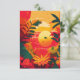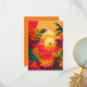 En levande solnedgång på en tropisk ö med reggae färg handflatan och blommor