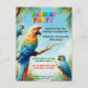 • Celebrate a special day with this vibrant tropical jungle-themed birthday invitation featuring colorful macaws surrounded by lush greenery and tropical flowers. Perfect for kids who love nature, adventure, and cheerful celebrations in a jungle-inspired setting!