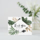 Skicka tack med det här anpassadet tack för vykortet. Den innehåller handskrivna skript, vattenfärgbilder av tropiska löv, faux-guld-löv och vattenfärgspenslar. Det här tropiska tackkortet är perfekt för sommarevenemang. Anpassa genom att lägga till namn och returadress.