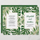 Tropiska löv-ceremonin grönt och guld bröllop och det dubbla party-programmet. Denna vackra visning lämnar av Split Löv Philodendron (Monstera deliciosa) eller Swiss Cheese Plant och handflatan lämnar i grönt med guld. På insidan finns det en gyllene polka mönster på gröntens bakgrund och er formulering är i ett vitt ram med guld kontur. Välj den till din tropiska kuststrand eller till destinationsbröllop. Fold den i mitten för att ha ett uppfällt stil-bröllopsprogram. Välj endast den här typen av pappert värde när det viks väl.
