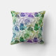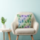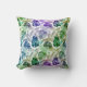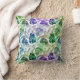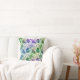 Söt dekoratorkudde med lila, teal och grönt tropiska löv på vitt.
