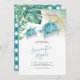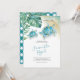 Planerar du en babydusch och letar efter perfektens inbjudningar? Titta inte längre! Vår eleganta, enkla babyduschinbjudan visar på ett vackert sätt namn i mor till att bli medlem i ett handskript för contemporary, kompletterat med händelseinformation i ett tidlöst serif-teckensnitt. Den tropiska inbjudan är en originalvattenfärg för gräns med havssköldpaddor och monstera handflatan löv, som återges i serenskuggor av blad, gröntar och turkos. Kortets baksida visar en matchande turkosa blå gingham mönster, som lägger till en aning charm. Perfekt för sommarluaus, tropisk strand och matade babyduschar vid kusten. Den här botaniska inbjudan blandar elegans med en avslappnad vibe. Utforska fler oceantemerade babyduschinbjudningar och vår kompletta stationära svit på www.zazzle.com/dotellabelle.