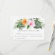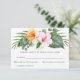 Ett vackert tropiskt temaområde med vattenfärgsbukett rosa och orange hibiscus-blommar, handflatan fronder och tropiska grönområden accentuerar bröllopets OSA responskort. Anpassa med önskat datum för OSA. Svarskortet är ett fantastiskt val för strandbröllop, målbröllop eller bröllop med tropiskt eller hawaiiskt tema.