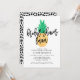 Inbjudan vänner och familj till din möhippa luau with roligt möhippa inbjudningskorts. Möhippa luau-inbjudningarna innehåller en vattenfärgsananas, vit bakgrund, trendigets skriptteckensnitt, platshållare för anpassningsbarna och en fet svart och vit punkt mönster på baksidan av inbjudan.