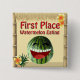 En illustration av en tiki hut med en lustig vattenmelon och texten First Ställe Watermelon Eating på en utmärkningsknapp.. ©2013charmainepaulson