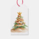 Lägg till en stänk av hawaiisk charm till presenter med den tropiska Mele Kalikimaka julklapp märkre. Den här märkrn har en sand Julgran som dekorerats med prydnadsföremål och en stjärnfiskspets och ger dig ett bifall till din presentförpackning. Anpassa med din familj namn för en tankfull avslutande beröring.