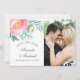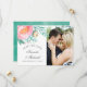 Mint, rosa och gult exotiska sommartidskort i bröllop spara datum med peonier och tropisk bladverk.